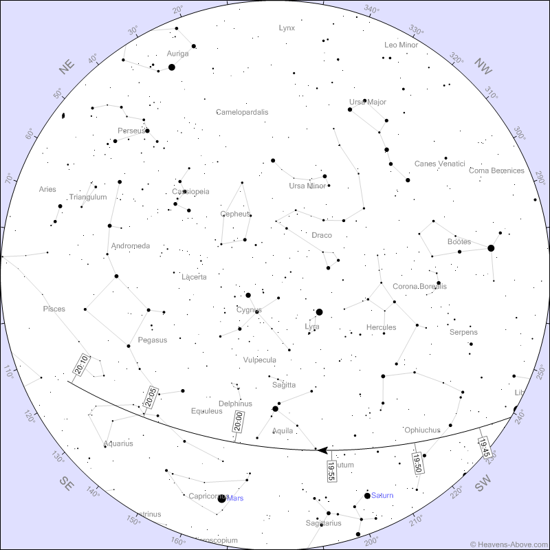 A week after my first try, the satellite tracker expects an excellent flyby, following the border between Germany and The Netherlands. Shortly after sundown I go back to the lake, this time it is cloudy and there is light rain, so I set up inside a little hut on a children playground right next to last weeks location. Again I wait patiently pointing my antenna to the sky for the signal to appear. I cannot find the signal at first, there is an interference overlapping with the exact same frequency as the LES-1. As the satellites path reaches its peak, the signal softly appears on the waterfall, I adjust the filter and there it is, my first successful catch of a ghost satellite. As a result of the satellites peculiar motion the signal slowly fades in and out in a four-second cycle. As the LES-1 passes by, its signal slowly dies away and simultaneously pitches down due to the Doppler shift, therefore I have to constantly adjust the filter of the software defined radio.